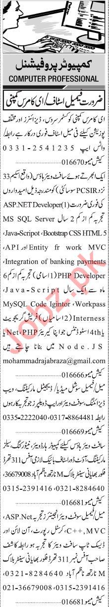Jang Sunday Classified Ads 27 Oct 2019 For IT Staff