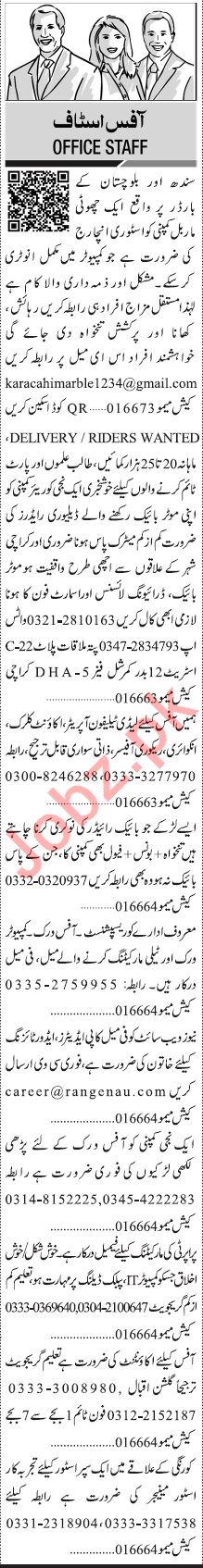 Jang Sunday Classified Ads 27 Oct 2019 For Office Staff