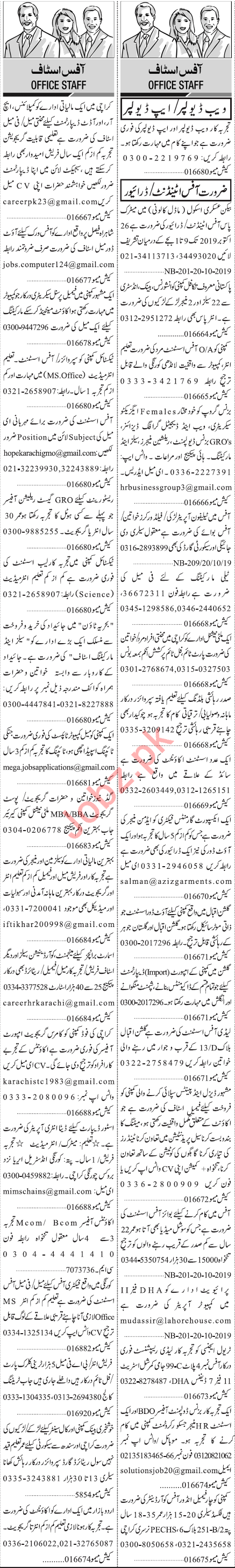 Jang Sunday Classified Ads 27 Oct 2019 for Office Staff