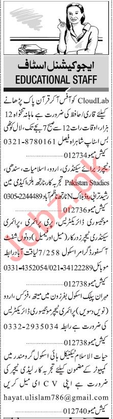 Jang Sunday Classified Ads 27 Sept 2020 for Educational
