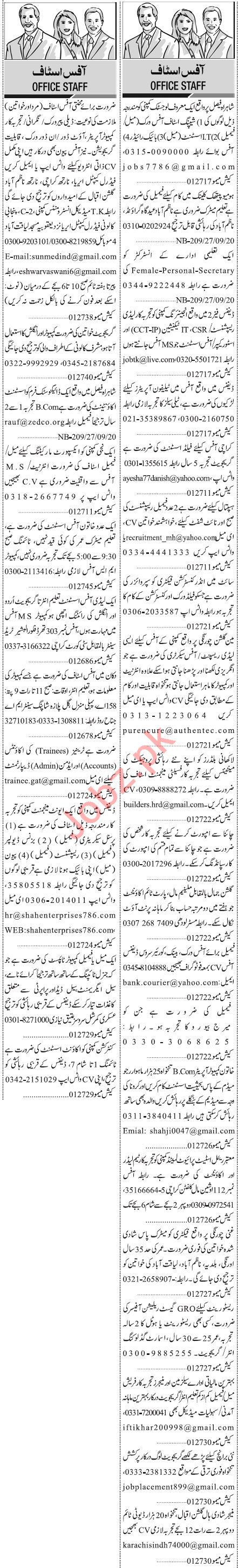 Jang Sunday Classified Ads 27 Sept 2020 for Office Staff