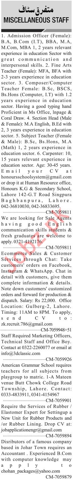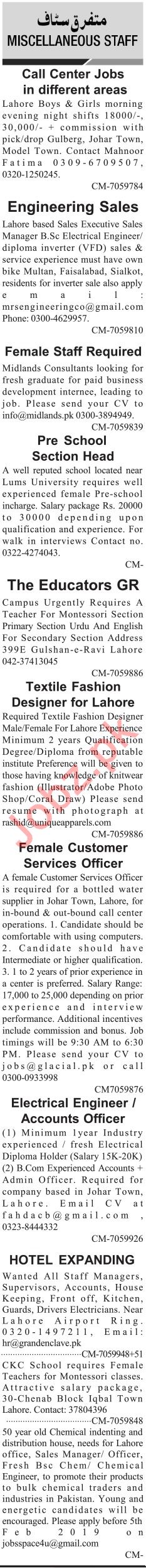Jang Sunday Classified Ads 27th Jan 2019 For Multiple Staff