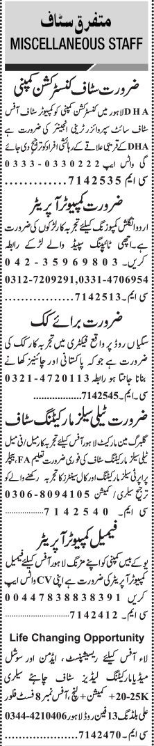 Todays New Jobs in Lahore