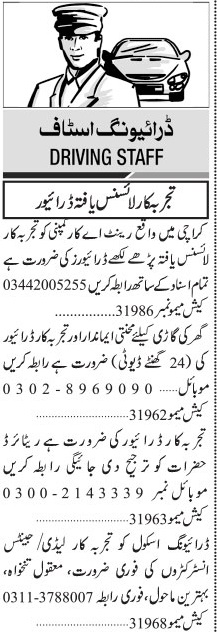 Jang Sunday Classified Ads 28 July 2024 For Driving Staff