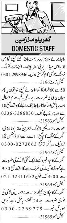 Jang Sunday Classified Ads 28 July 2024 For House Staff