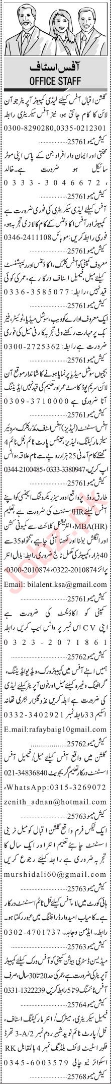 Jang Sunday Classified Ads 28 May 2023 For Office Staff