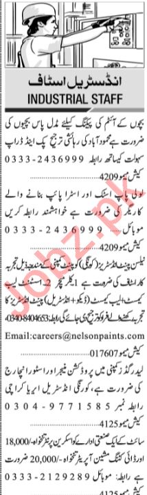 Jang Sunday Classified Ads 28th April 2019 Industrial Staff