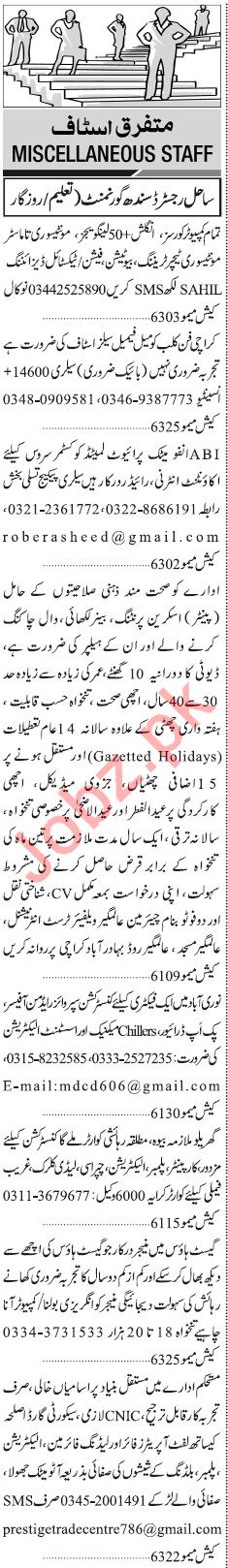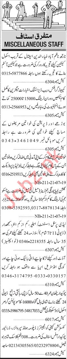 Jang Sunday Classified Ads 28th July 2019 For General Staff