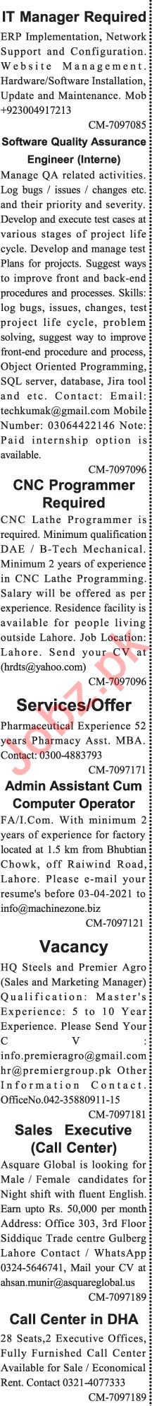 Jang Sunday Classified Ads 28th March 2021 For General Staff