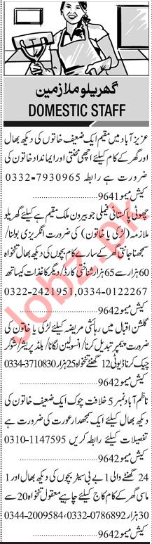 Jang Sunday Classified Ads 28th March 2021 For House Staff