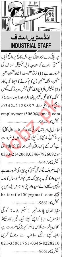 Latest Private Industry Industrial Posts Karachi 2025
