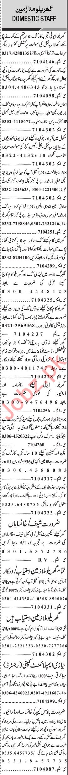 Jang Sunday Classified Ads 29 August 2021 For Domestic Staff
