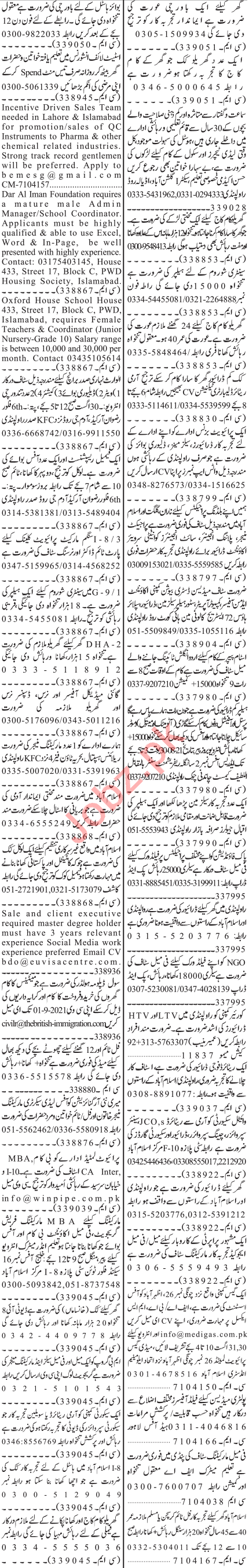 Jang Sunday Classified Ads 29 August 2021 For Office Staff