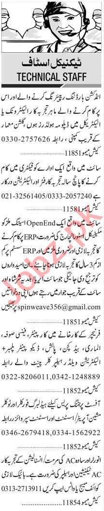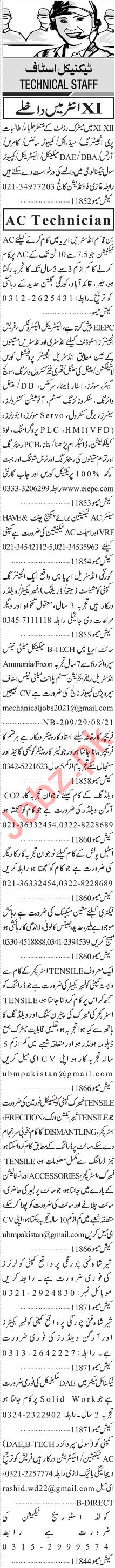 Jang Sunday Classified Ads 29 August 2021 for Technical