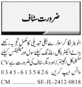 Jang Sunday Classified Ads 29 Dec 2024 For Factory Staff