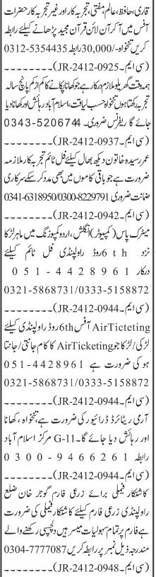 Private Company invites applications for job positions advertised in daily Jang dated 30 December 2024 for following vacancies in Islamabad, gujar khan and rawalpindi Islamabad Pakistan.