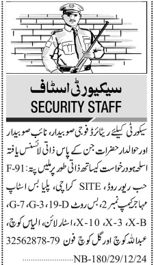 Jang Sunday Classified Ads 29 Dec 2024 For Security Guards