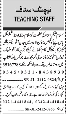 Jang Sunday Classified Ads 29 Dec 2024 For Teaching Staff