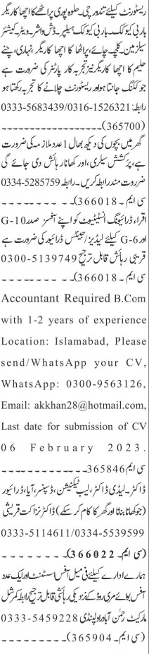 Private Company is looking for candidates for following posts as per job advertisement published in daily Jang Newspaper of January 30, 2023 for location Islamabad, rawalpindi Islamabad Pakistan: