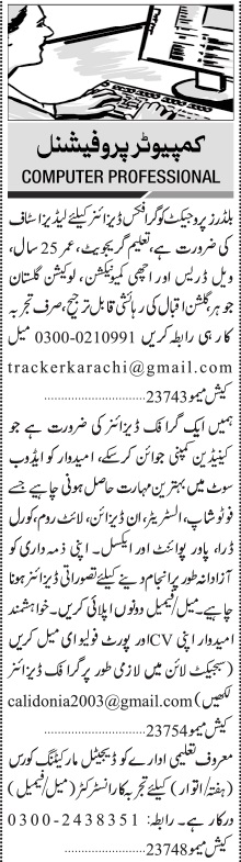 Jang Sunday Classified Ads 29 Jan 2023 for Computer Staff