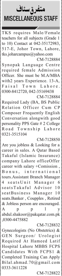 Jang Sunday Classified Ads 29 Jan 2023 For Management Staff