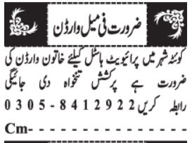 Jang Sunday Classified Ads 29 June 2025 For Hostel Staff