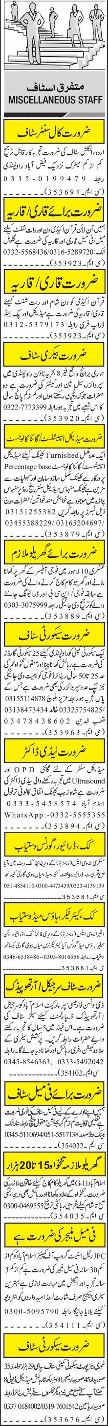 Jang Sunday Classified Ads 29 May 2022 For Admin Staff