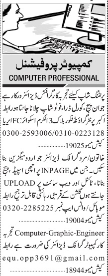 Jang Sunday Classified Ads 29 May 2022 For Computer Staff