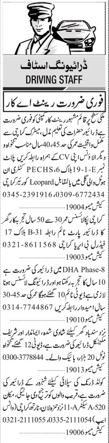 Jang Sunday Classified Ads 29 May 2022 for Driving Staff