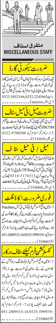 Vacant posts including office assistant, civil site supervisor, indoor sales staff, helper, site supervisor, accountant, welder, accounts officer and security guard are announced in Private Company Rawalpindi, islamabad Punjab Pakistan as per 30 May 2022 advertisement in daily Jang Newspaper. Educational qualifications required Middle, Matric, Intermediate and Bachelor etc.