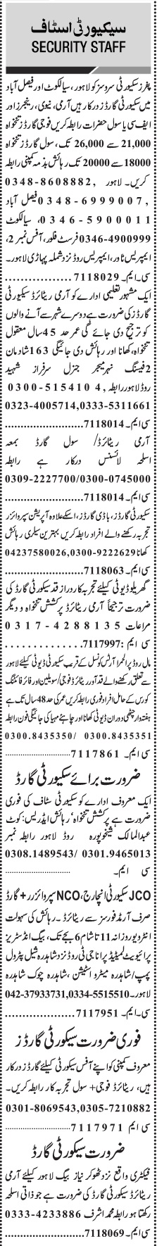 Jang Sunday Classified Ads 29 May 2022 for Security Guards