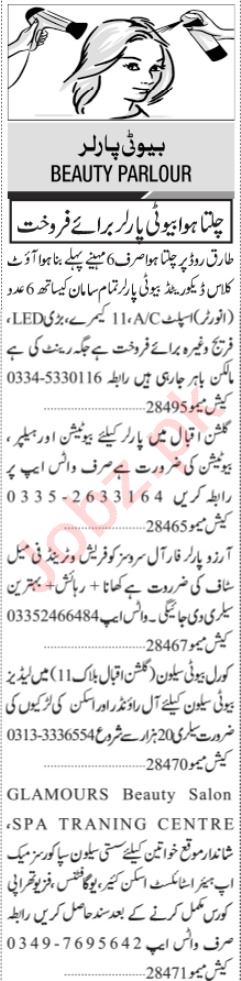 Jang Sunday Classified Ads 29 Oct 2023 For Beauty Parlor