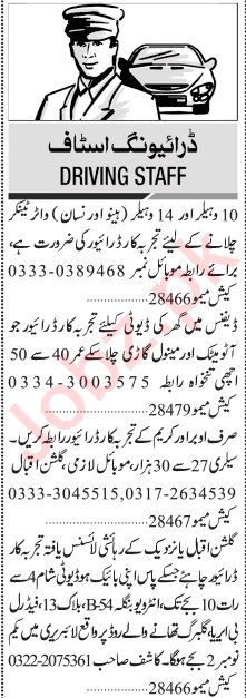 Jang Sunday Classified Ads 29 Oct 2023 For Driving Staff