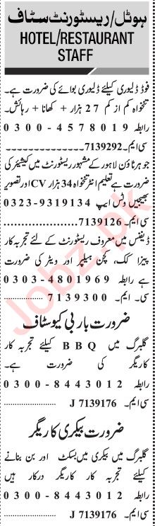 Restaurant invites applications for job positions advertised in daily Jang dated 30 October 2023 for following vacancies in Lahore, lahore Punjab Pakistan.