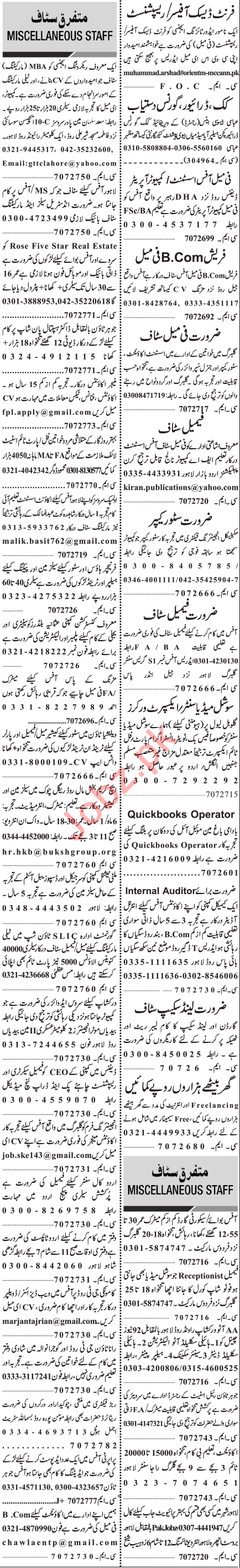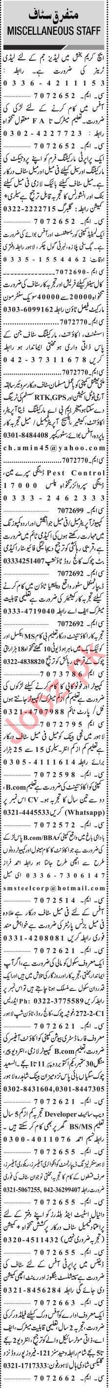 Jang Sunday Classified Ads 29th Sep 2019 For General Staff