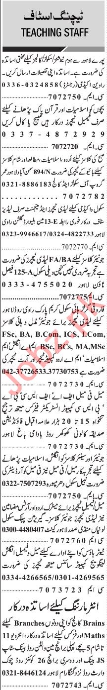 Jang Sunday Classified Ads 29th Sep 2019 For Teaching Staff