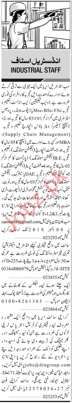 Jang Sunday Classified Ads 2nd Dec 2018 for Industrial Staff