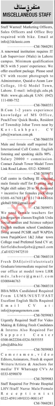 Jang Sunday Classified Ads 2nd Feb 2019 Marketing Staff