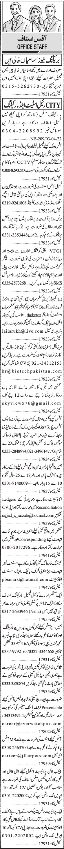 Jang Sunday Classified Ads 3 April 2022 For Management Staff