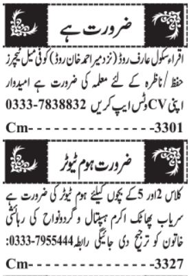 Jang Sunday Classified Ads 3 April 2022 For Teachers