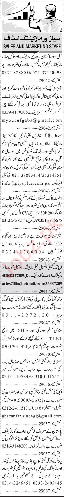 Jang Sunday Classified Ads 3 Dec 2023 for Sales Staff