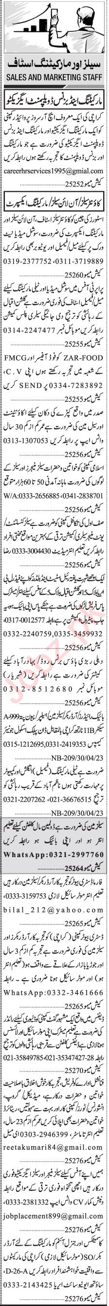 Jang Sunday Classified Ads 30 April 2023 for Marketing Staff