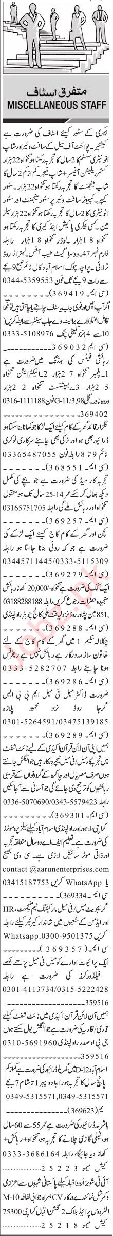 Private Company jobs advertisement dated about 1 May 2023 in daily Jang Newspaper invites application for the vacant post of driver, customer relation officer, hr manager, field worker, sales promoter, house maid, shop manager, qari, marketing team management, loader, salesman, doctor, admin manager, house worker, news reporter, ltv driver, mbbs doctor, kitchen worker, electrician, maid, teacher, store keeper, cashier, plumber, office staff, qaria, house driver, receptionist and quran teacher in Islamabad, karachi, lahore and rawalpindi Islamabad Pakistan. Middle, MBBS, MBA, Bachelor, Matric, B.com, DAE, BBA, M.com, BA, B.E and Intermediate etc. educational qualification will be preferred.