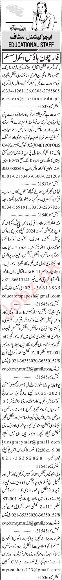 Jang Sunday Classified Ads 30 June 2024 For Teaching Staff