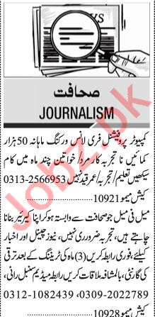 Jang Sunday Classified Ads 30 May 2021 For Journalism Staff