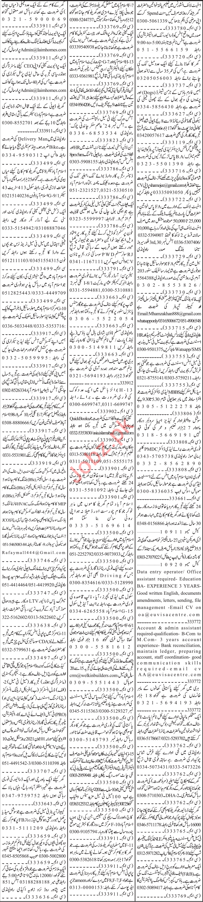 Jang Sunday Classified Ads 30 May 2021 For Multiple Staff