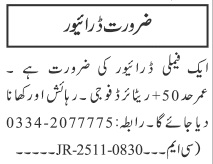 Jang Sunday Classified Ads 30 Nov 2025 For Driving Staff