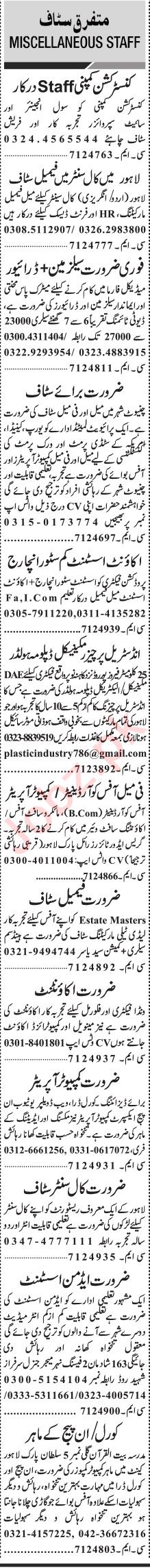 Jang Sunday Classified Ads 30 Oct 2022 For Admin Staff