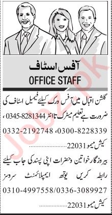 Private Company jobs advertisement dated about 31 October 2022 in daily Jang Newspaper invites application for the vacant post of female office staff and office staff in Karachi, karachi Sindh Pakistan. Candidates with Intermediate, Middle, Matric and Bachelor etc. educational background will be preferred.