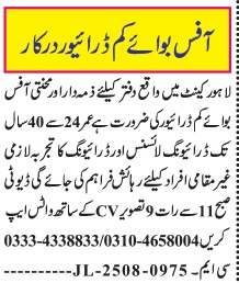 Private Company is looking for candidates for following posts as per job advertisement published in daily Jang Newspaper of September 1, 2025 for location Cantt Lahore, lahore Punjab Pakistan: